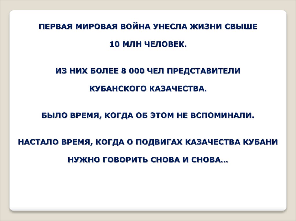НАСТАЛО ВРЕМЯ, КОГДА О ПОДВИГАХ КАЗАЧЕСТВА КУБАНИ