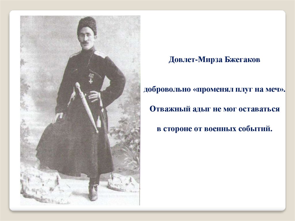 Довлет-Мирза Бжегаковдобровольно «променял плуг на меч».