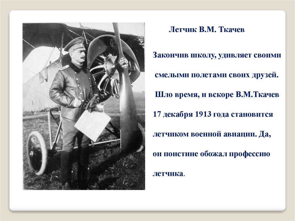 Летчик В.М. ТкачевЗакончив школу, удивляет своими