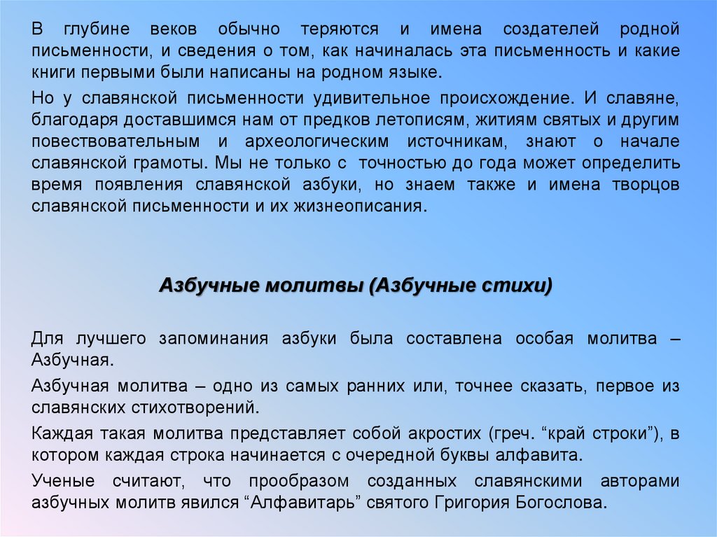 азбучных молитв явился “Алфавитарь” святого Григория Богослова.