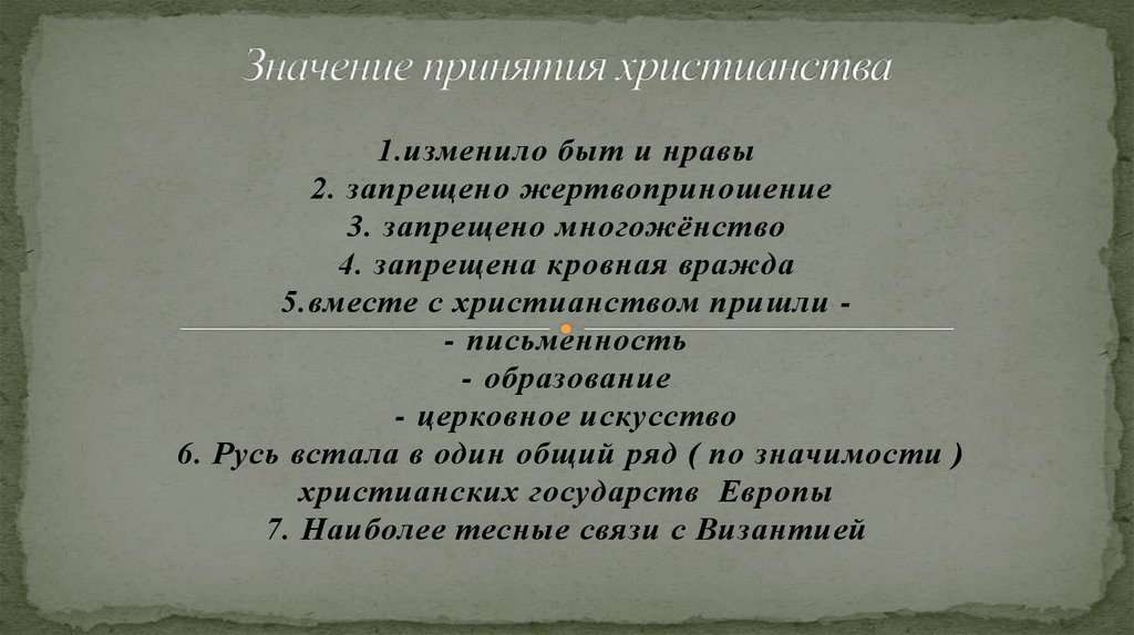 1.изменило быт и нравы2. запрещено жертвоприношение