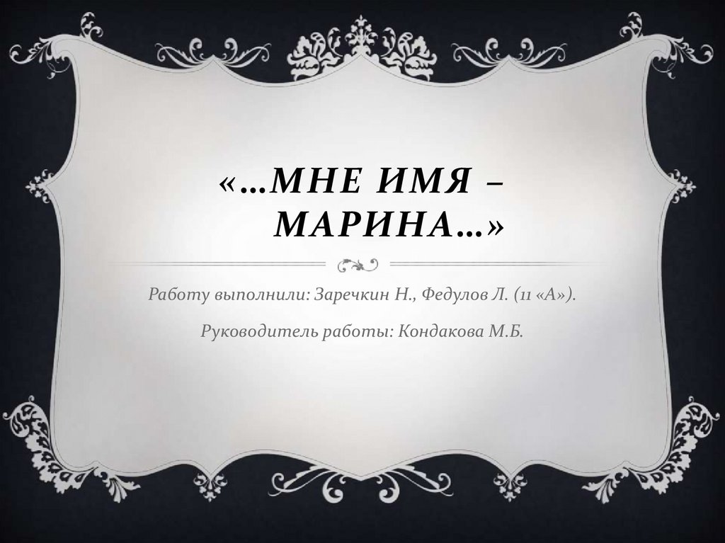 «…МНЕ ИМЯ –МАРИНА…»