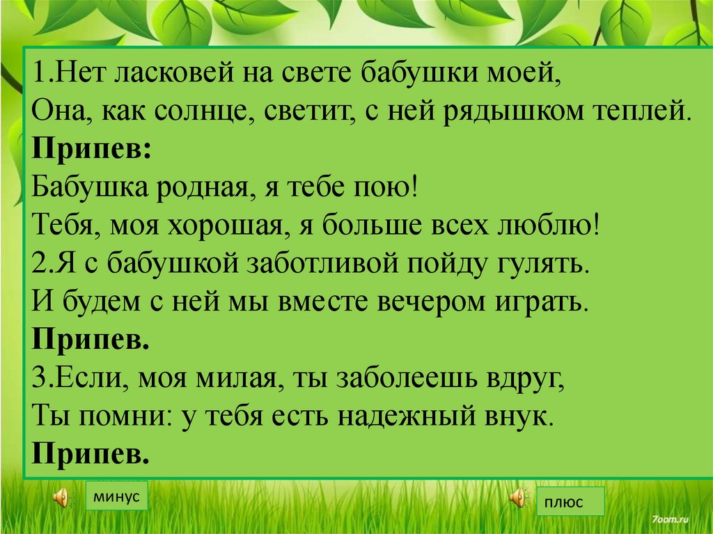 http://allforchildren.ru/songs/grandma8.php - плюс и минус песни