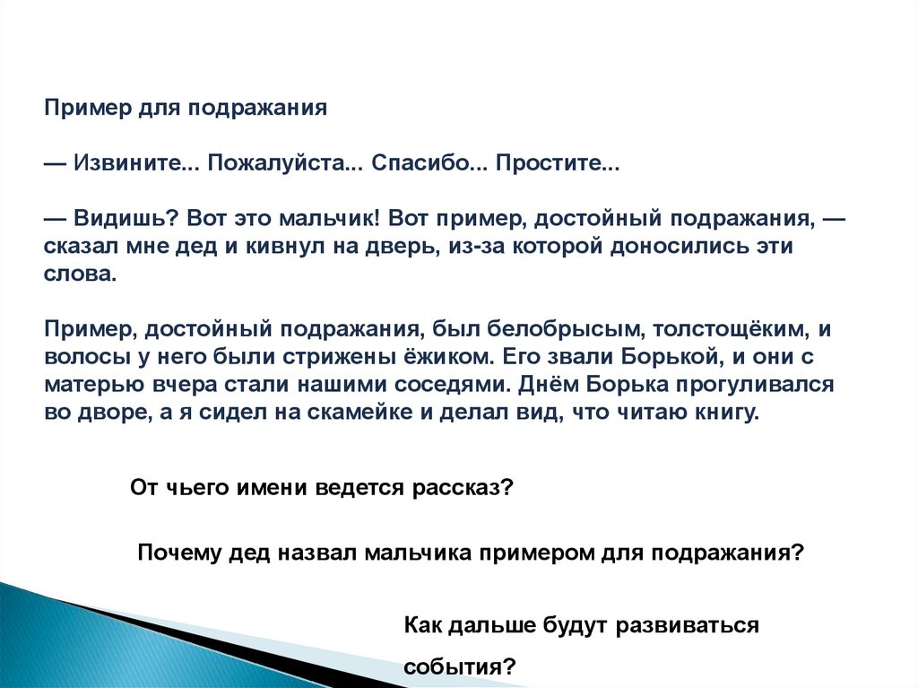 Воспитанный мальчик, достойный подражания, действовал