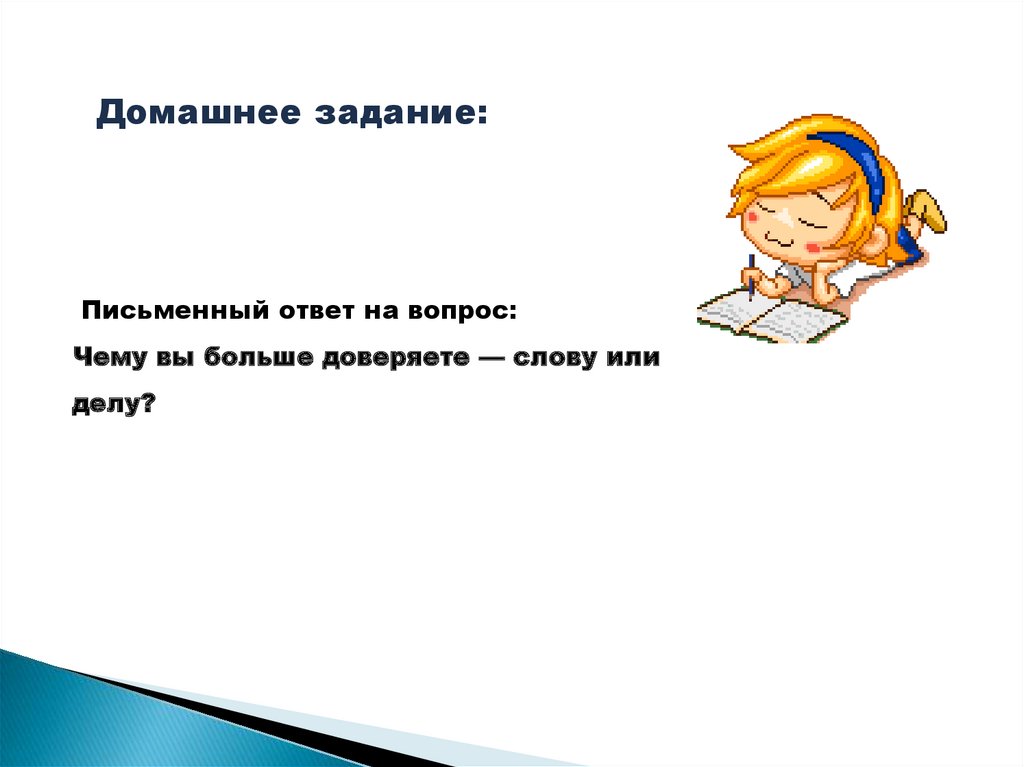 Домашнее задание:Письменный ответ на вопрос: