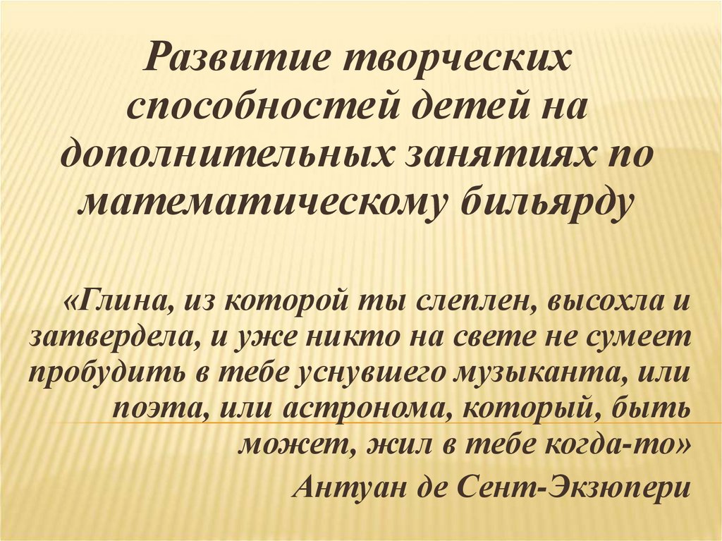 Развитие творческих способностей детей на дополнительных занятиях по математическому бильярду