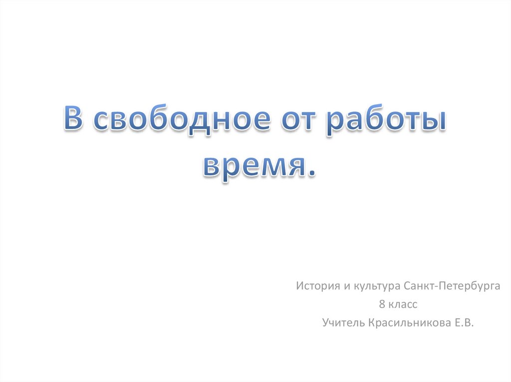 В свободное от работы время. История и культура Санкт-Петербурга. 8 класс