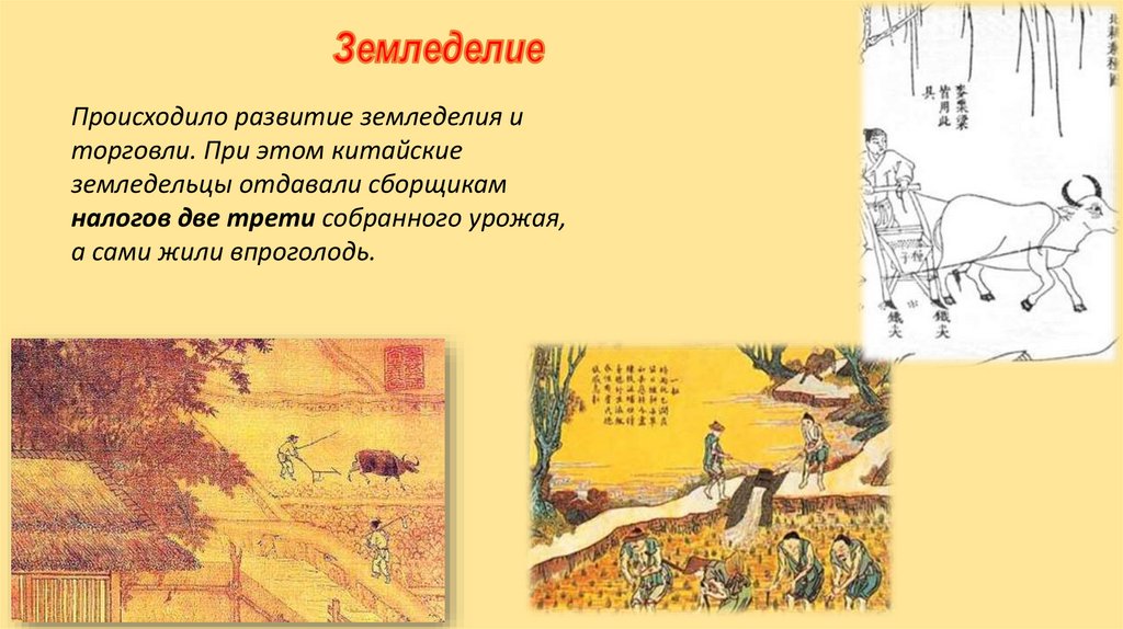 Происходило развитие земледелия иторговли. При этом китайские