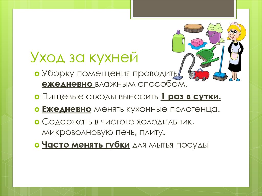 Уход за кухнейУборку