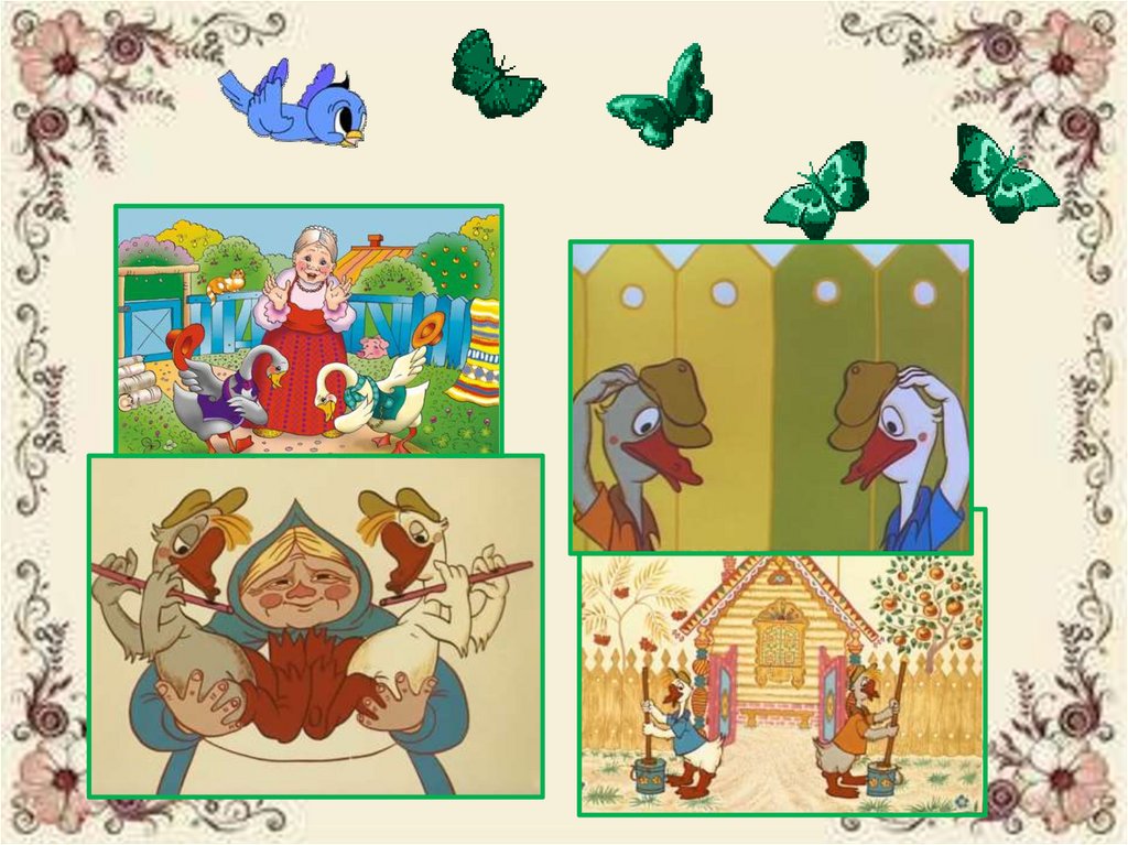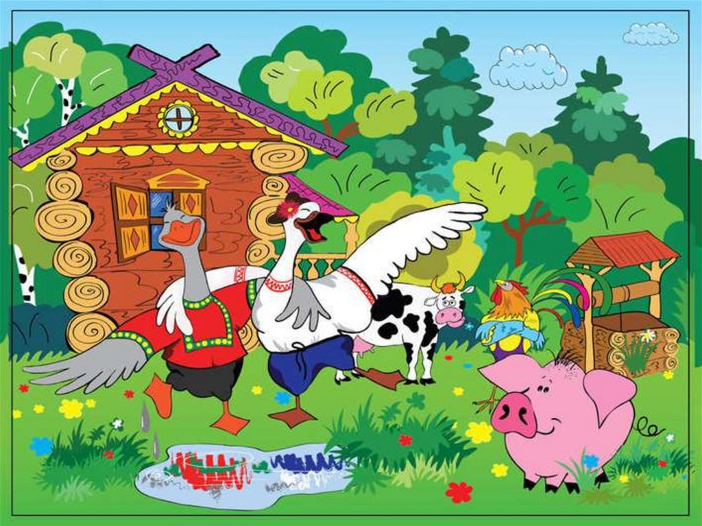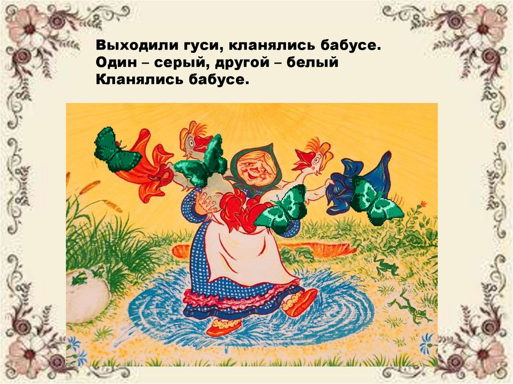 Выходили гуси, кланялись бабусе.Один – серый, другой – белый