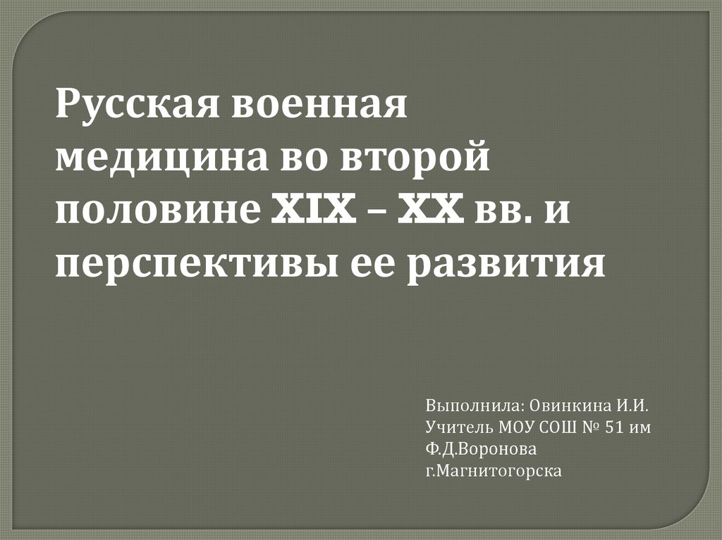 Русская военная медицина во второй половине XIX – XX вв. и перспективы её развития