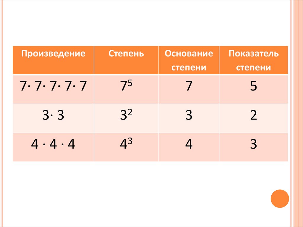 Выражение вида 54 называется степенью, где число 5 это основание степени, а число 4 - это показательстепени.