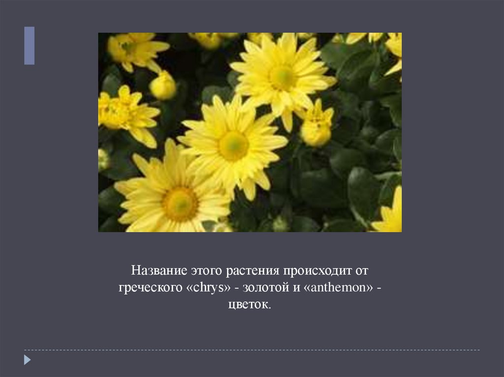 Название этого растения происходит отгреческого «сhrys» - золотой и «anthemon» цветок.