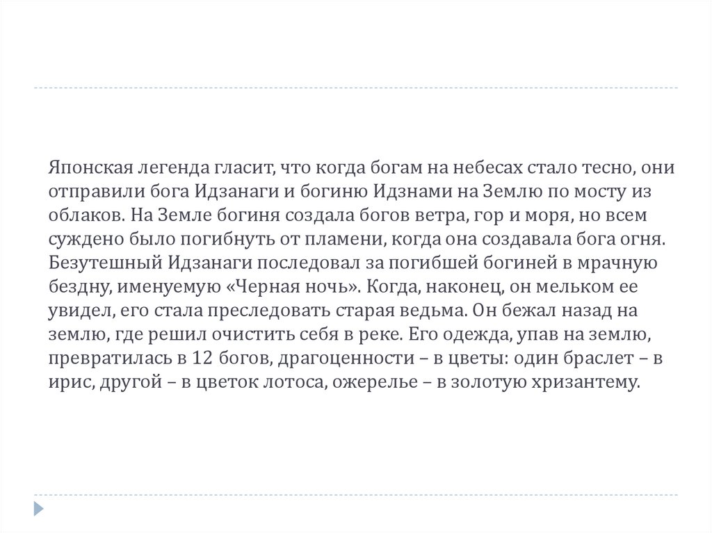 Японская легенда гласит, что когда богам на небесах стало тесно, ониотправили бога Идзанаги и богиню Идзнами на Землю по мосту из