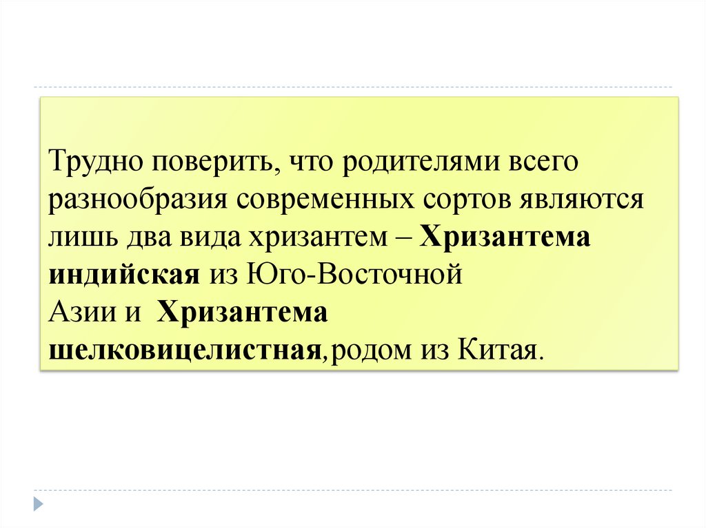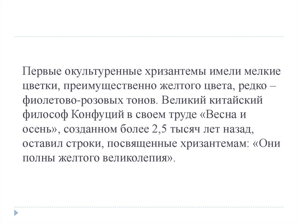Первые окультуренные хризантемы имели мелкиецветки, преимущественно желтого цвета, редко –