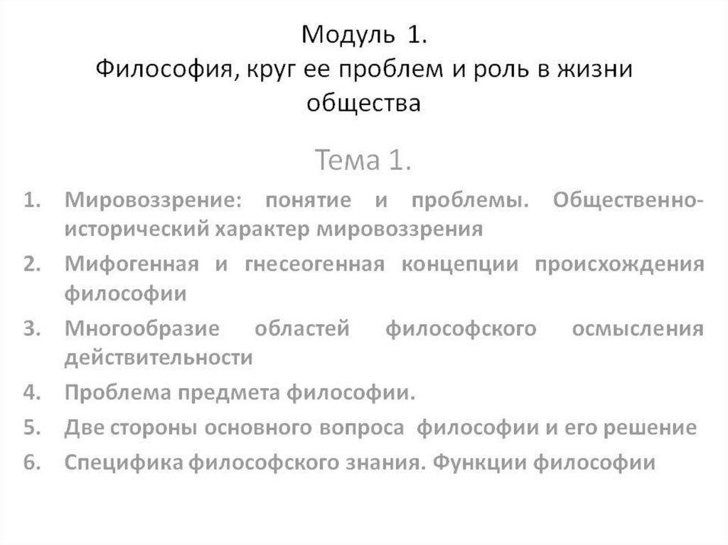Введение в философию. Модуль 1. Философия, круг её проблем и роль в жизни общества