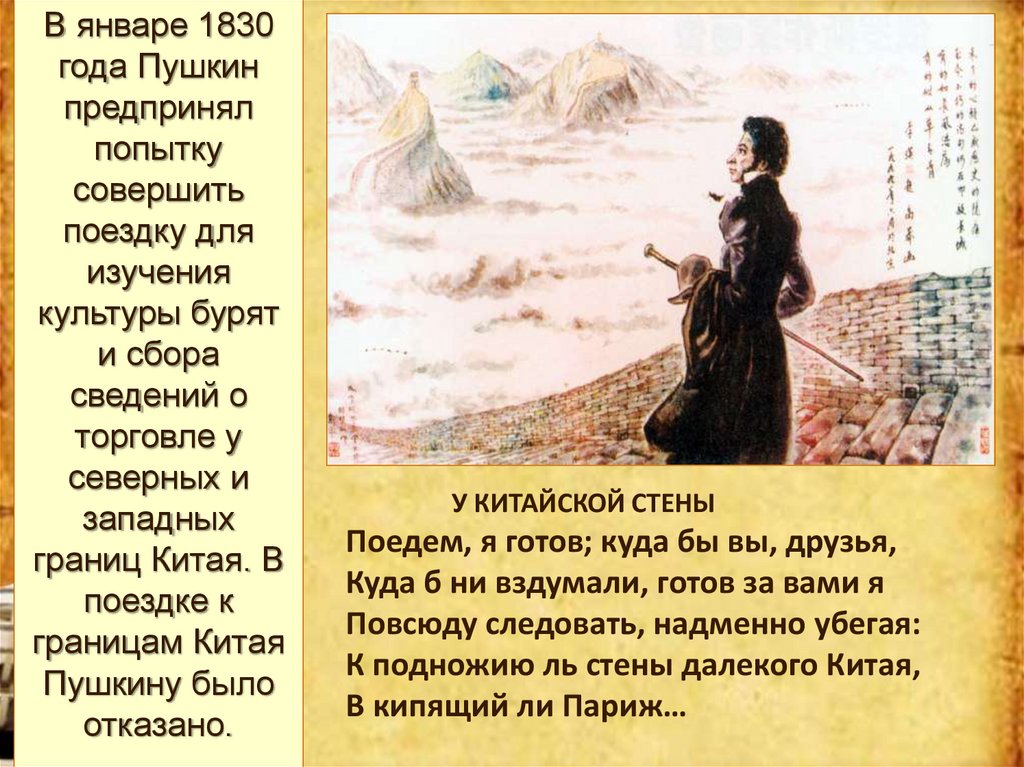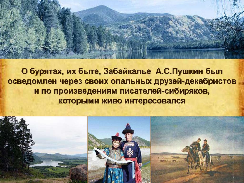 О бурятах, их быте, Забайкалье А.С.Пушкин былосведомлен через своих опальных друзей-декабристов