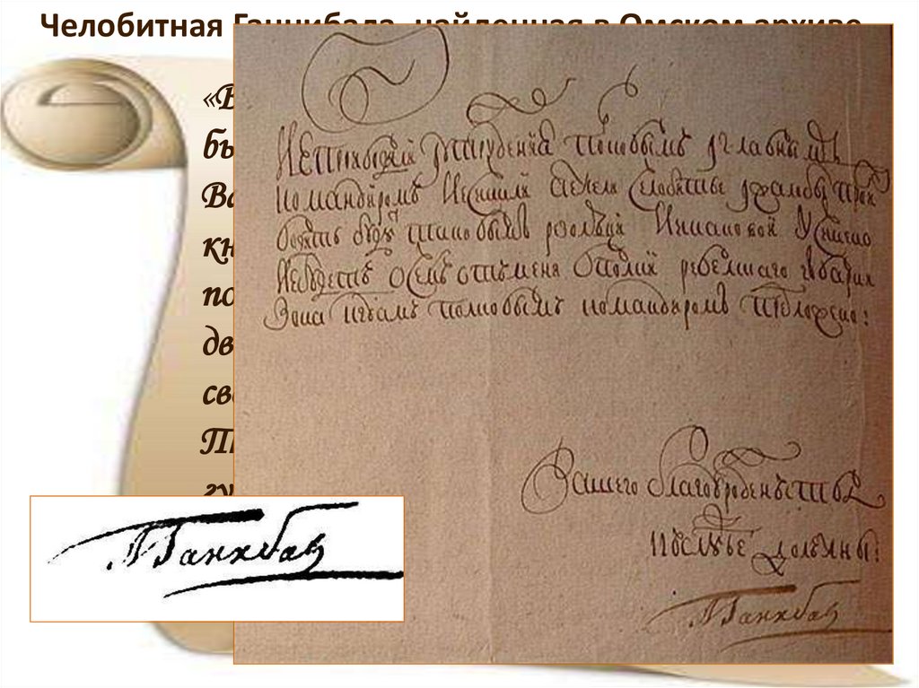 Челобитная Ганнибала, найденная в Омском архиве«В прошлом 1727 году мая 15 день в