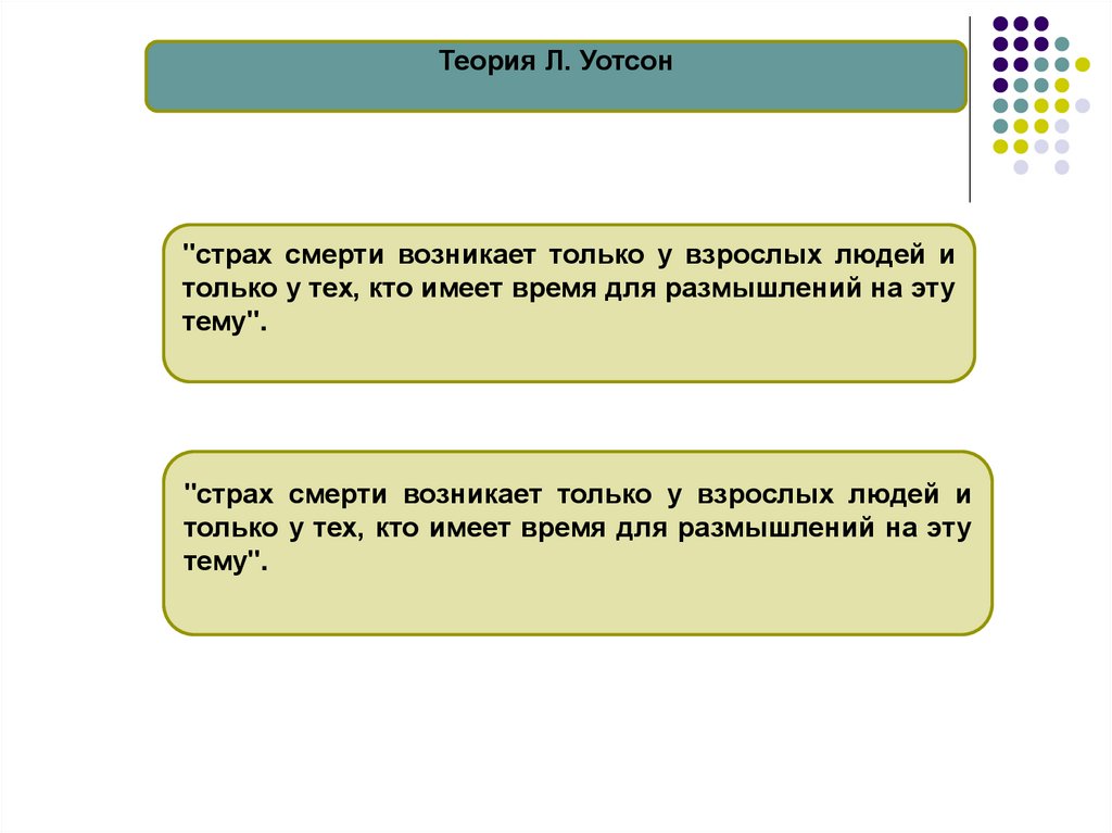 Теория Л. Уотсон"страх смерти возникает только у взрослых людей и
