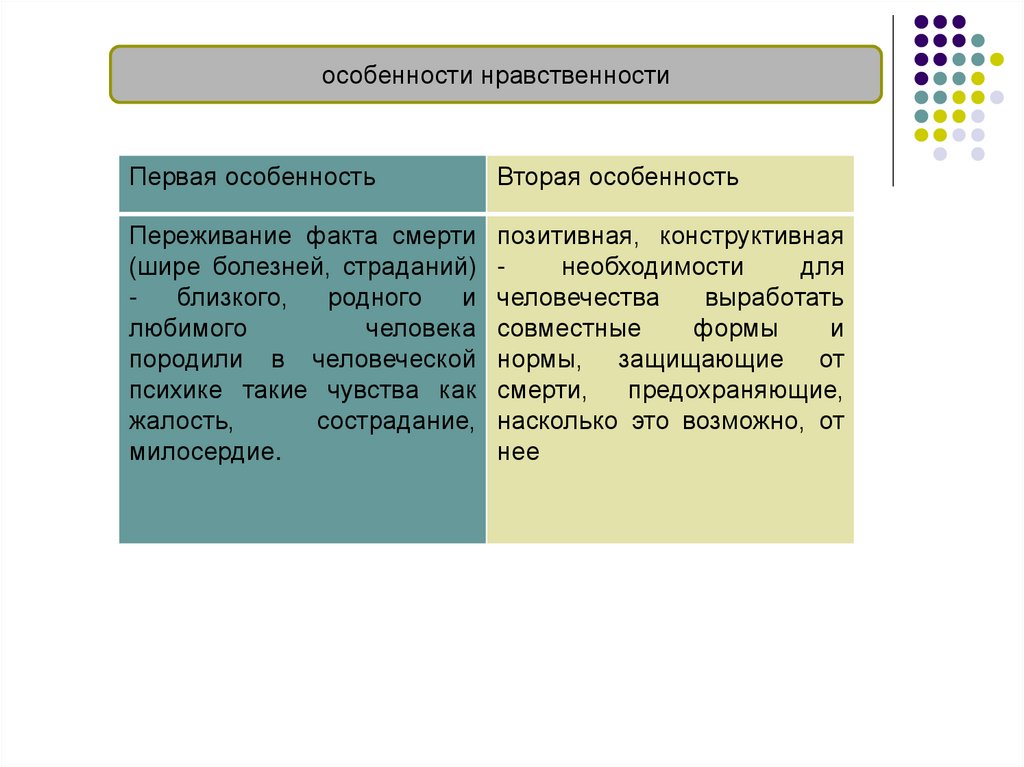 особенности нравственностиПервая особенность
