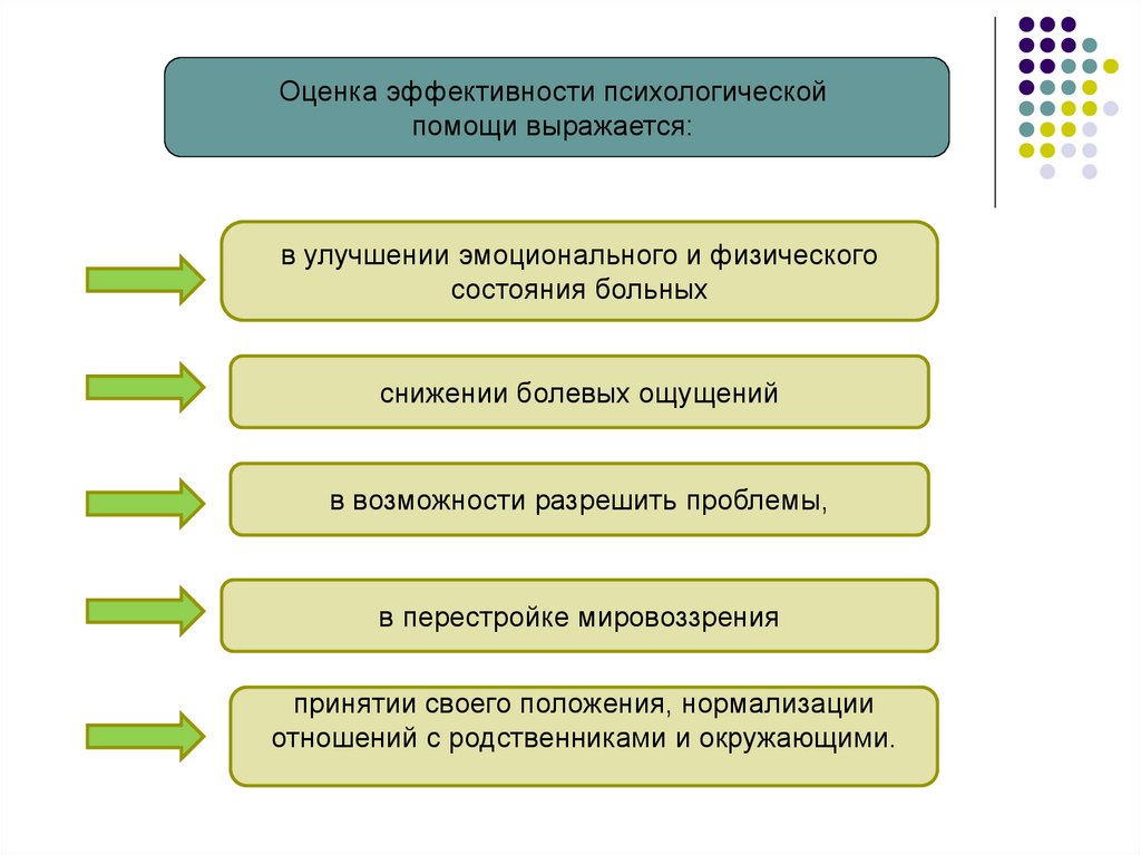 Оценка эффективности психологическойпомощи выражается:
