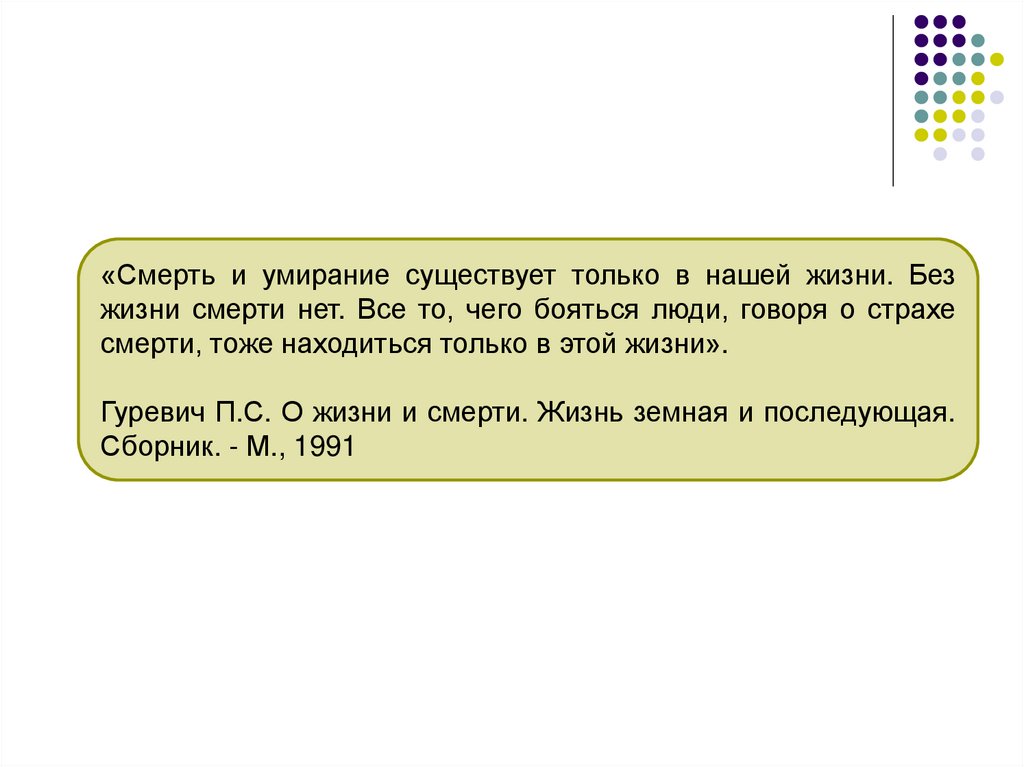 3. Гуревич П.С. О жизни и смерти. Жизнь земная и