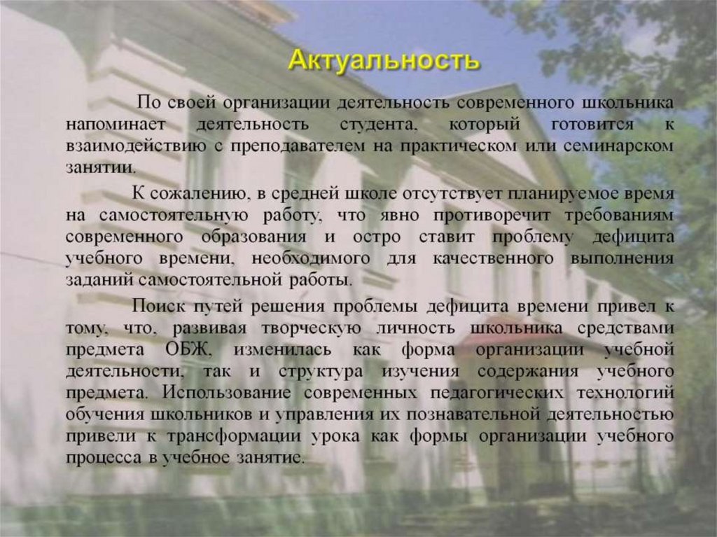 Организация и управление самостоятельной деятельностью учащихся в процессе обучения основам военной службы
