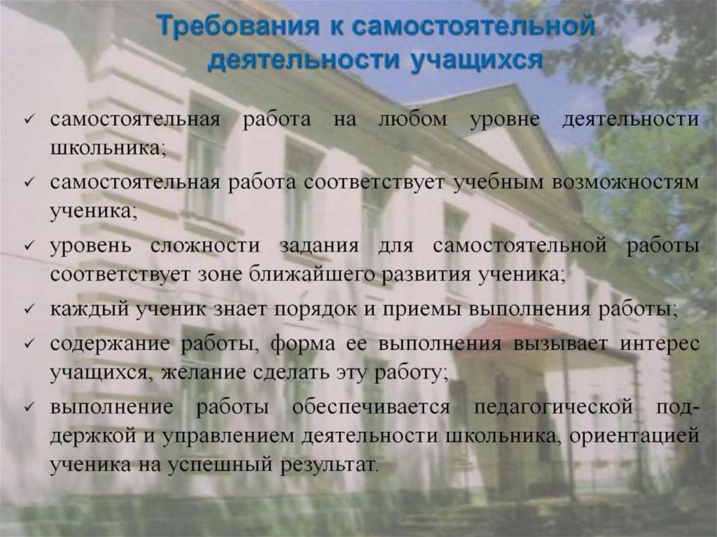 Самостоятельная деятельность учащихся – залог эффективности обучения