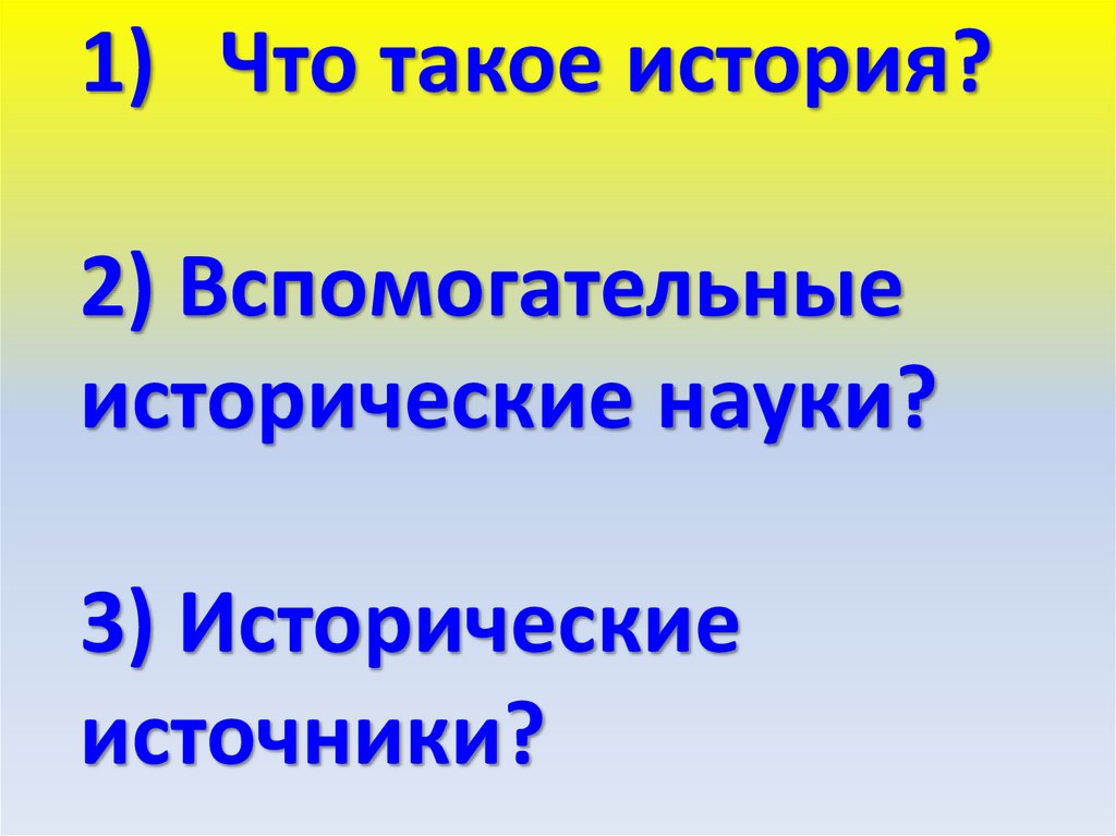 1) Что такое история?2) Вспомогательные