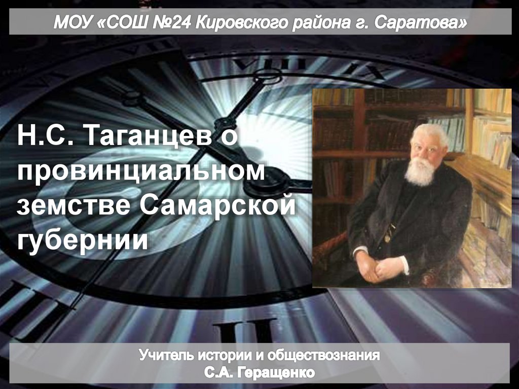 Н.С. Таганцев о провинциальном земстве Самарской губернии