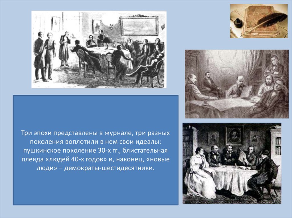 Три эпохи представлены в журнале, три разныхпоколения воплотили в нем свои идеалы:
