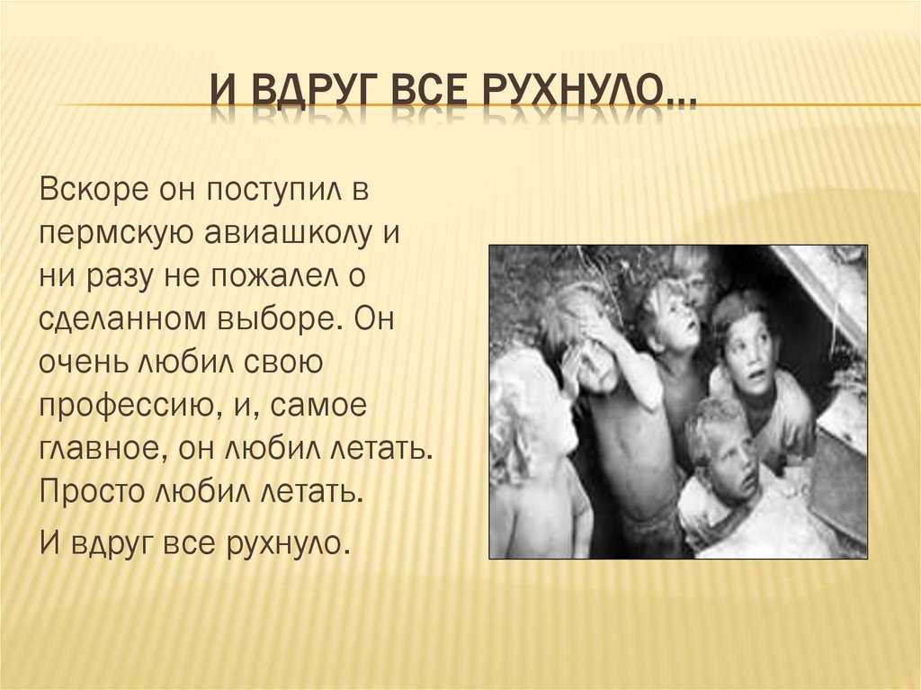 И ВДРУГ ВСЕ РУХНУЛО…Вскоре он поступил в