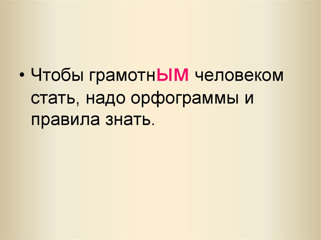 • Чтобы грамотным человекомстать, надо орфограммы и