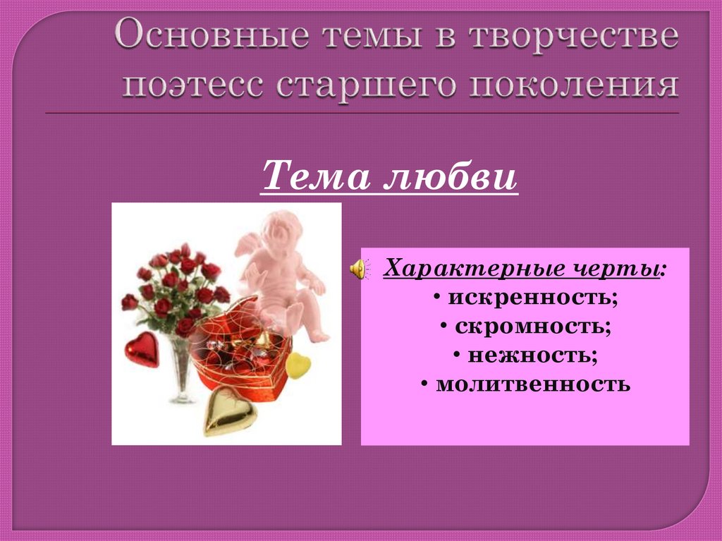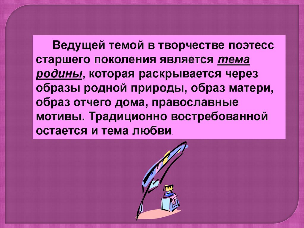 Ведущей темой в творчестве поэтессстаршего поколения является тема