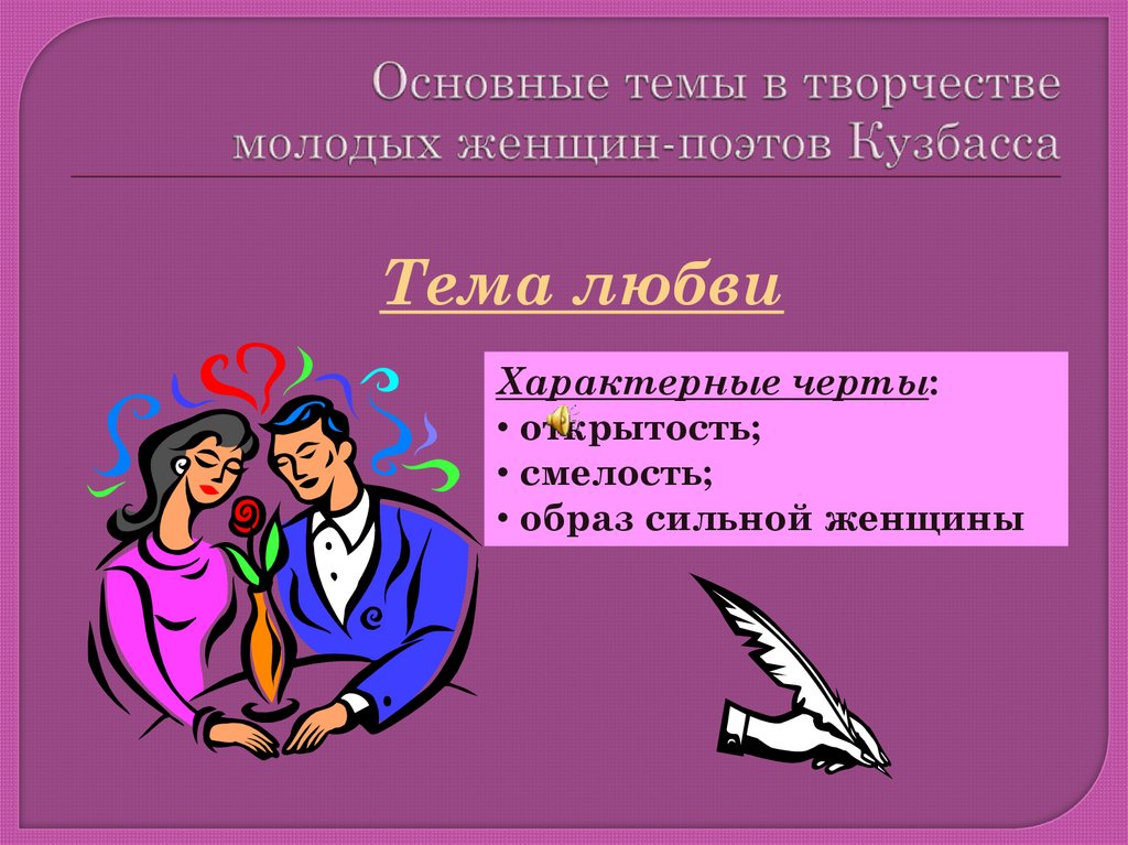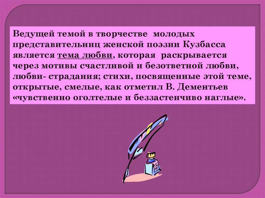 Ведущей темой в творчестве молодыхпредставительниц женской поэзии Кузбасса