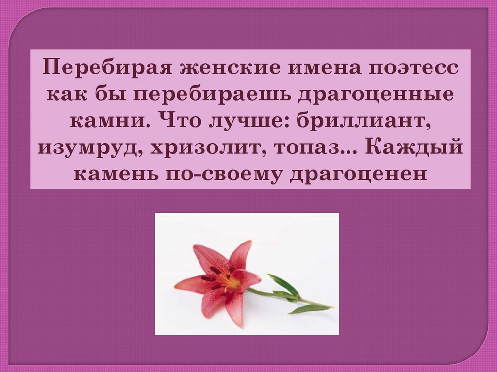 Перебирая женские имена поэтесскак бы перебираешь драгоценные