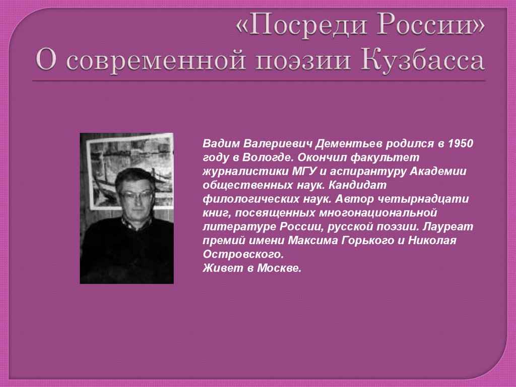 Вадим Валериевич Дементьев родился в 1950году в Вологде. Окончил факультет