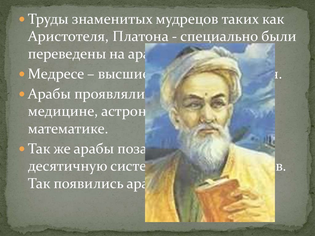 Так же арабы позаимствовали