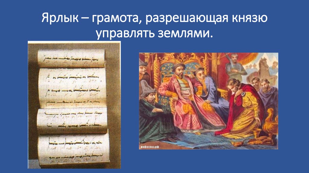 Ярлык – грамота, разрешающая князюуправлять землями.