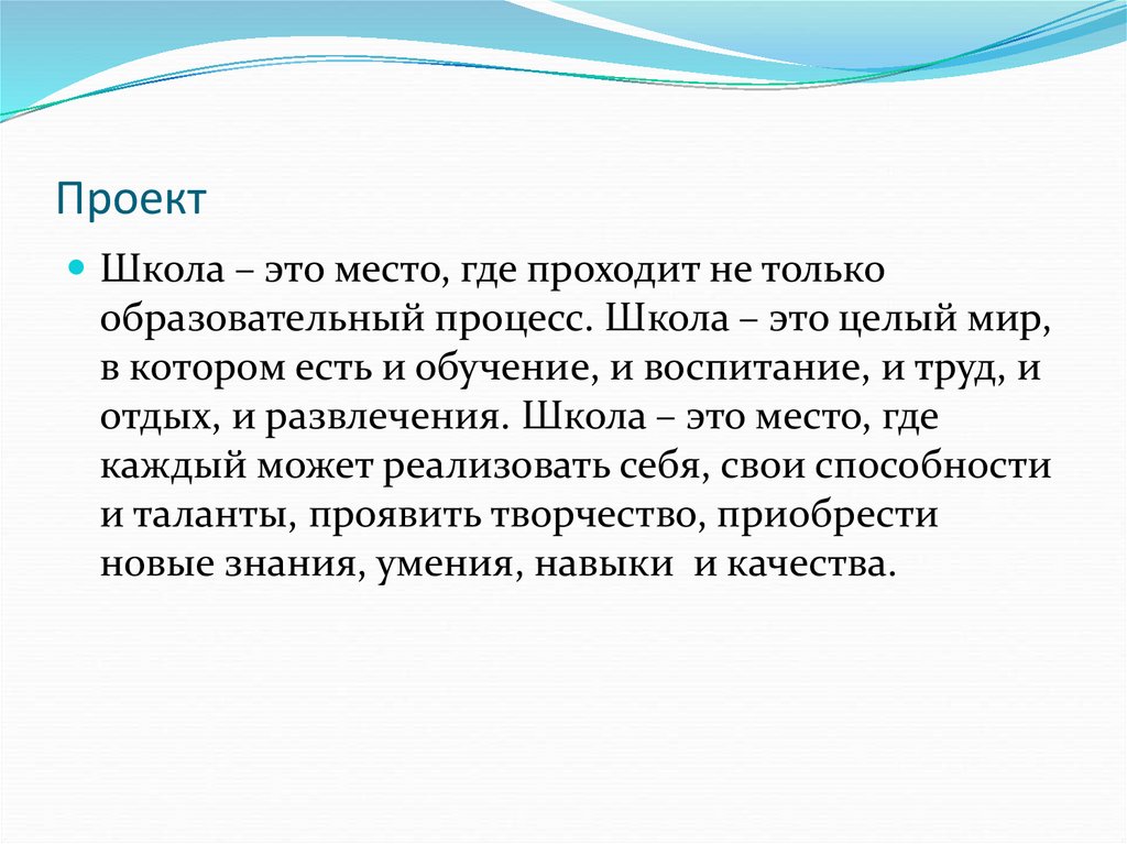 Школа – это место, где проходит не толькообразовательный процесс. Школа – это целый мир,