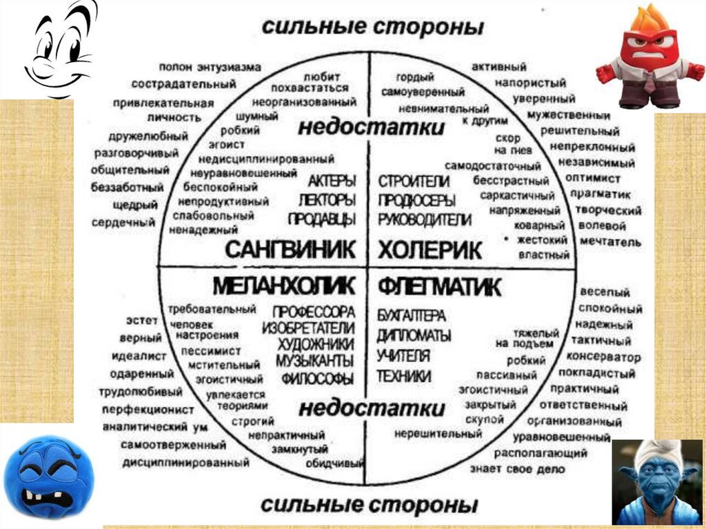 сангвинический, 14% – флегматический и 21% – меланхолический.