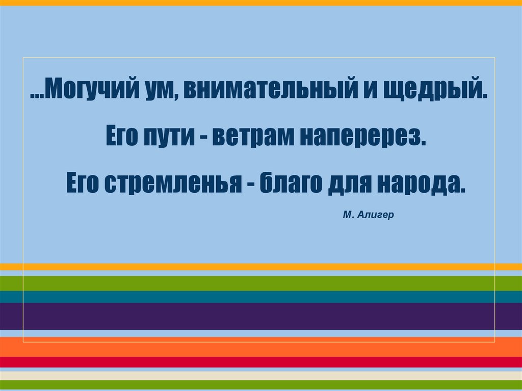 ...Могучий ум, внимательный и щедрый.Его пути - ветрам наперерез.