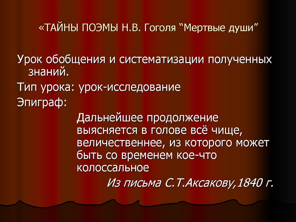 1. «ТАЙНЫ ПОЭМЫ Н.В. Гоголя “Мертвые души”