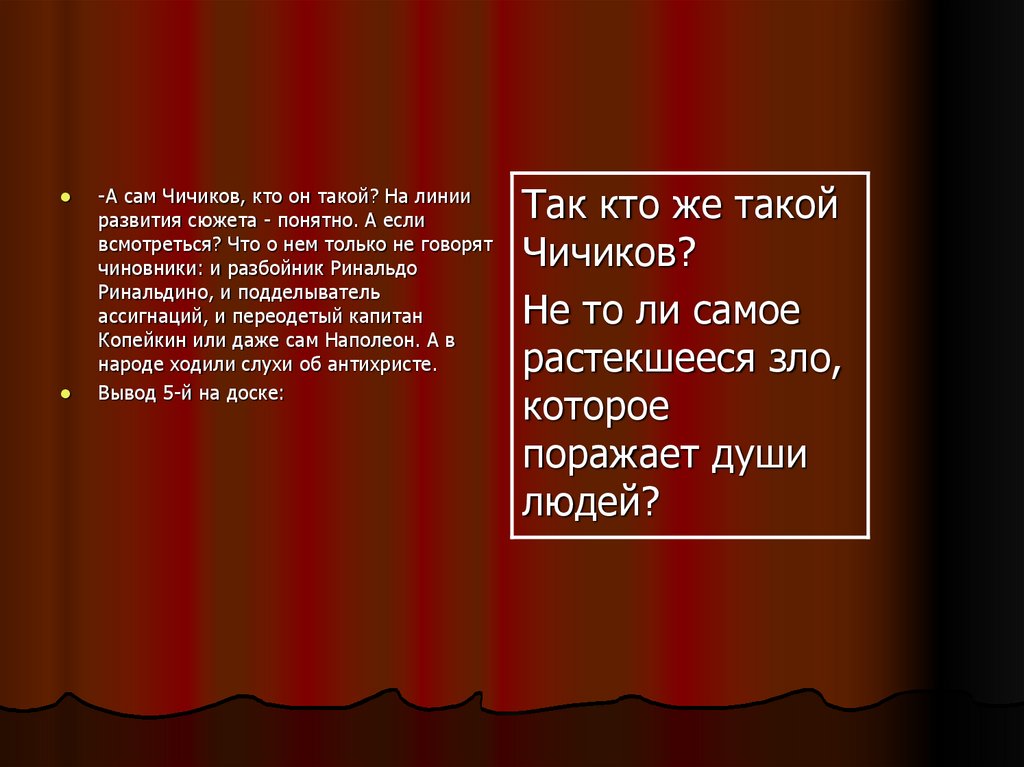 -А сам Чичиков, кто он такой? На линииразвития сюжета - понятно. А если