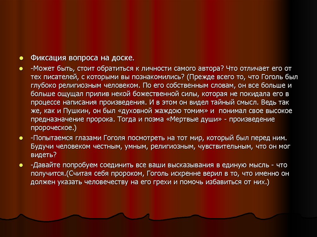 Фрагмент урока в 9 классе по теме: «Тайны поэмы Н.В.
