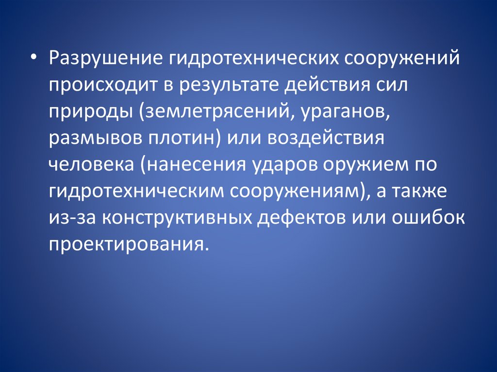 • Разрушение гидротехнических сооруженийпроисходит в результате действия сил