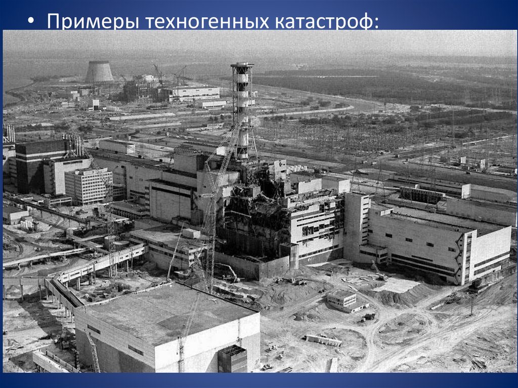 • Примеры техногенных катастроф:• Авария на Чернобыльской АЭС 26 апреля