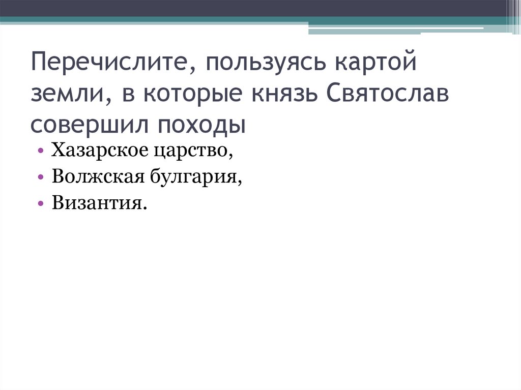 Перечислите, пользуясь картойземли, в которые князь Святослав