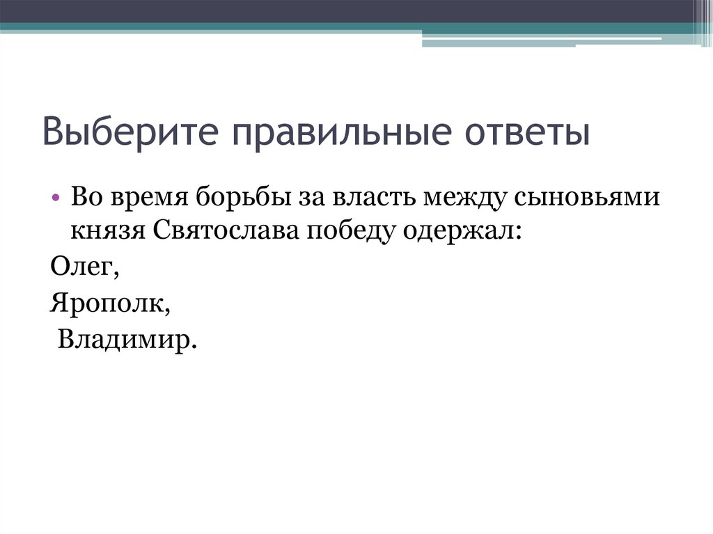 Выберите правильные ответы• Во время борьбы за власть между сыновьями