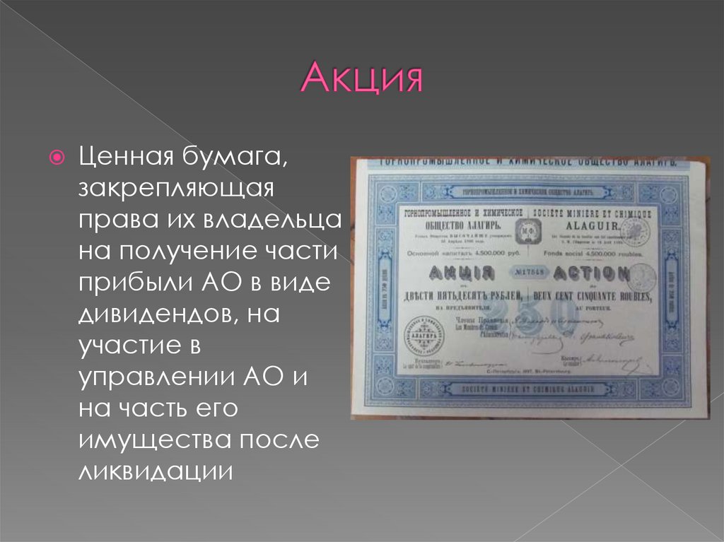Это ценная бумага, закрепляющаяправо ее владельца на получение от